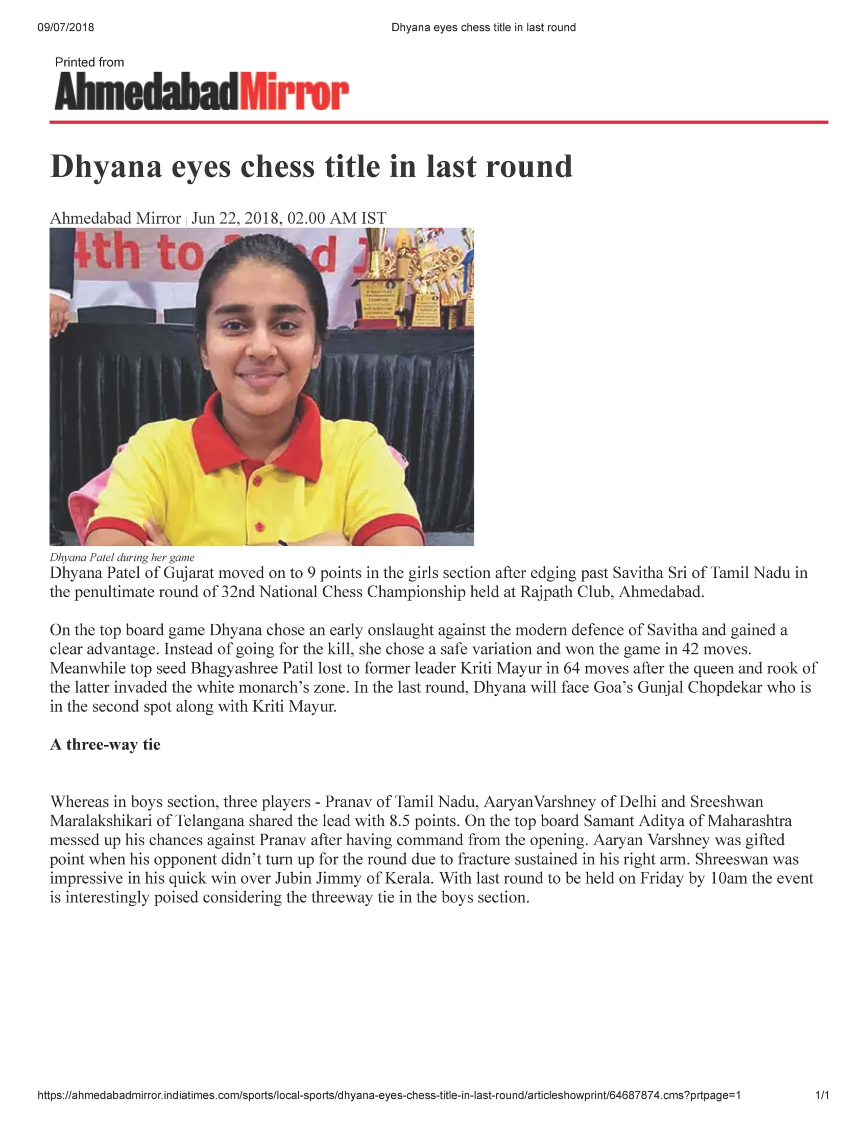 32nd U-13 Girls National Chess_ Dhyana Patel 7
